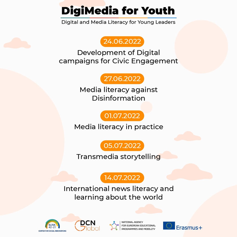 The training program includes the following modules: Critical thinking, Disinformation & Accountability, Development of Digital campaigns for Civic Engagement, Media literacy against Disinformation, Media literacy in practice, Transmedia storytelling and International news literacy and learning about the world.